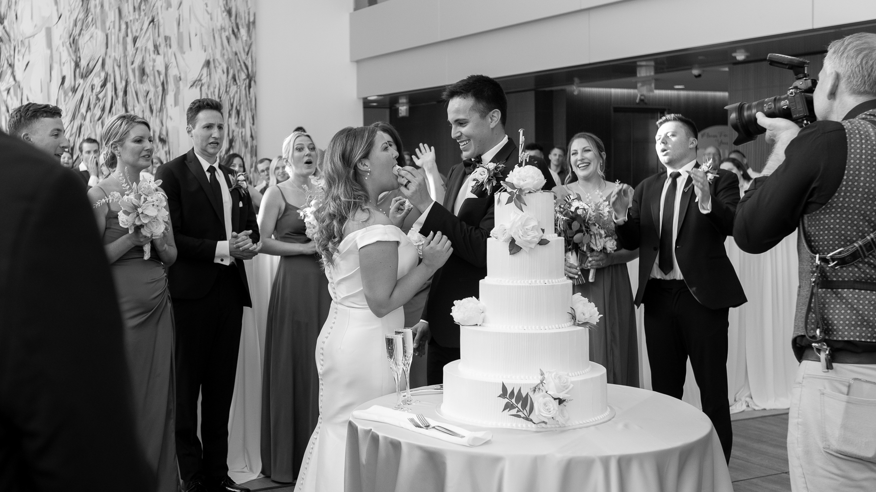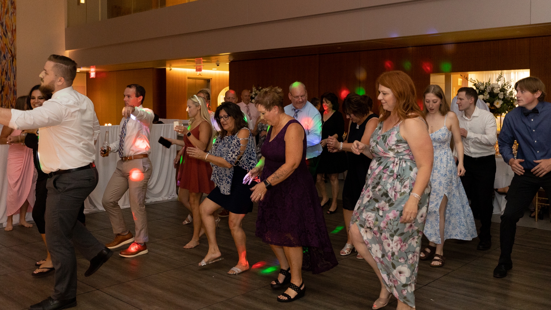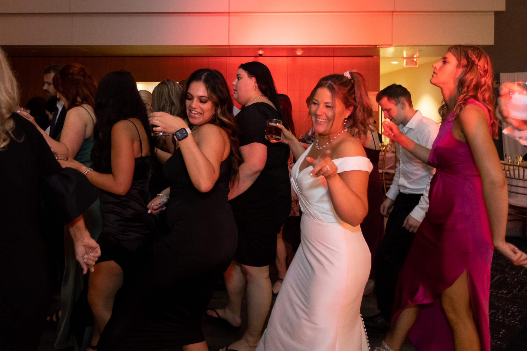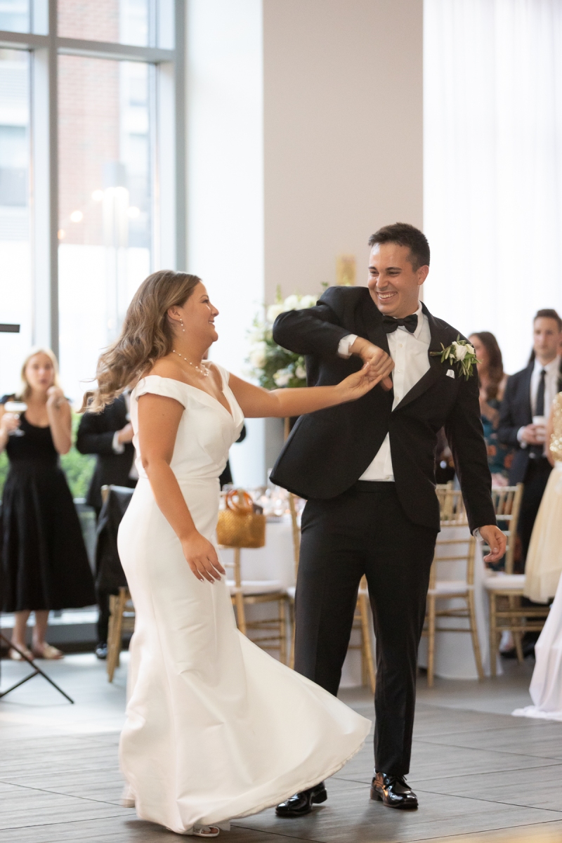 Megan & Chris’s gorgeous wedding reception took place is the lobby of the Ernst & Young building in The Flats. Upon arrival, guests were greeted with a glass of champagne as they made their way to the penthouse for cocktail hour. The room was absolutely stunning with gold and ivory accents. The staff is always accommodating and the food was outstanding as always. After dinner, the real party started. It was non-stop dancing until the very end and that’s just the way we like it!! Congrats Megan & Chris!!