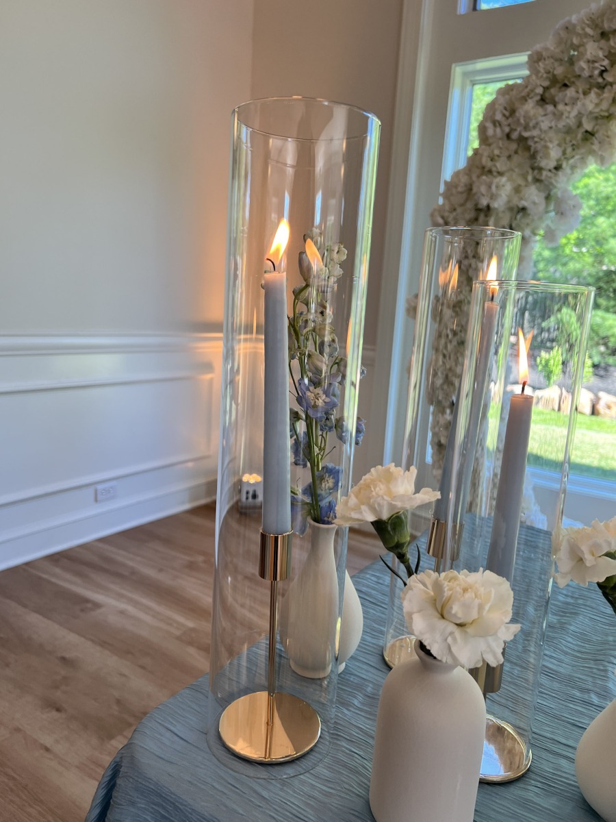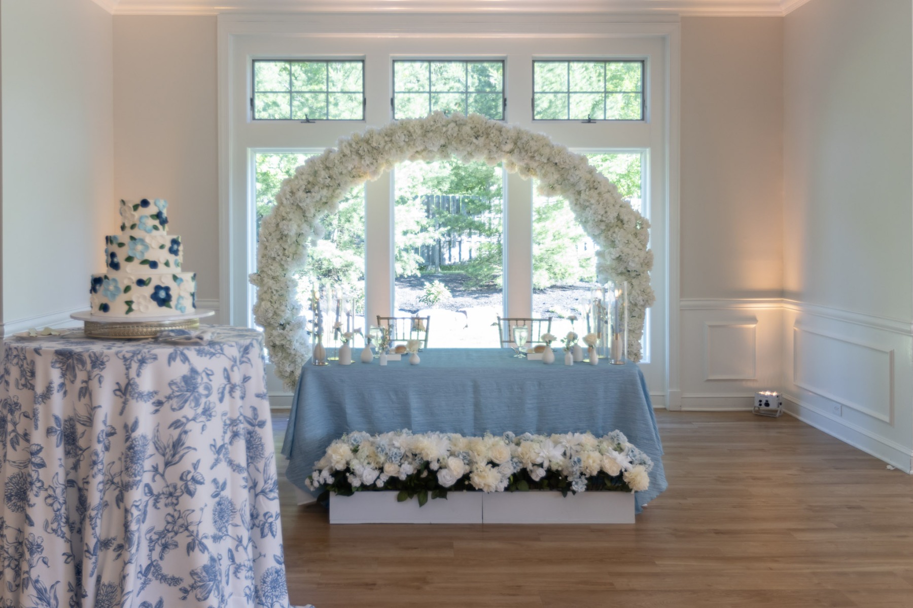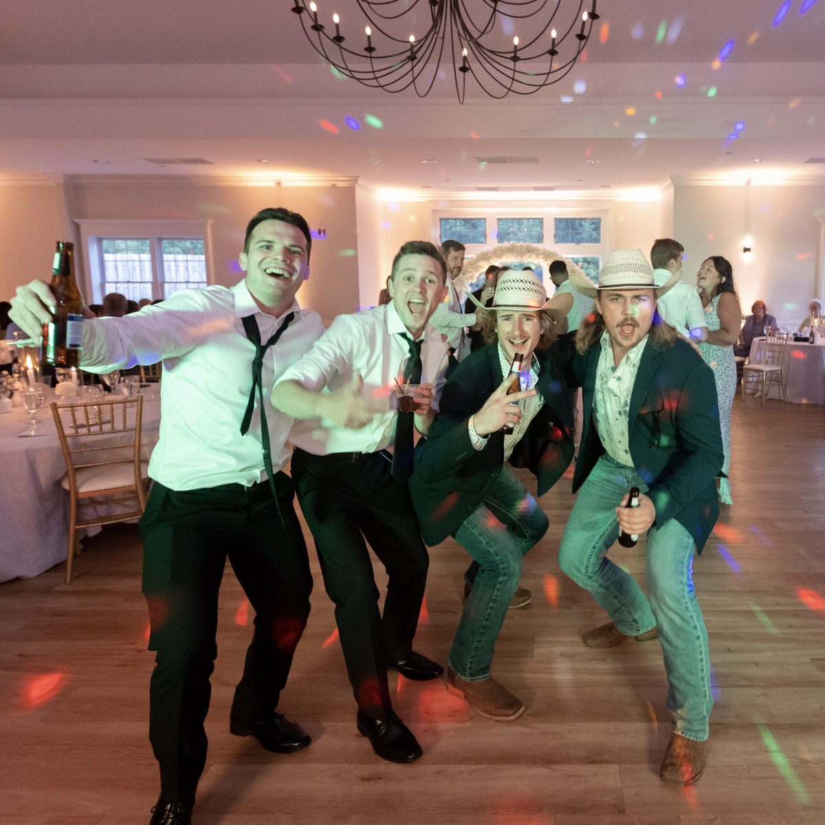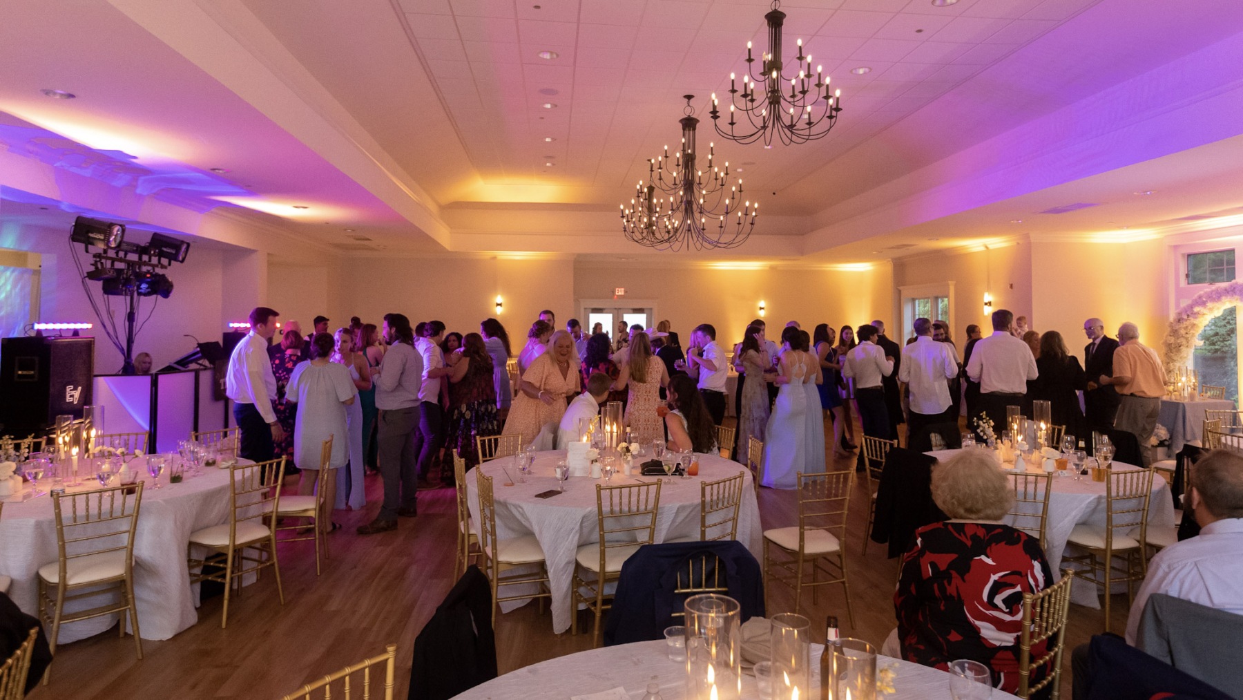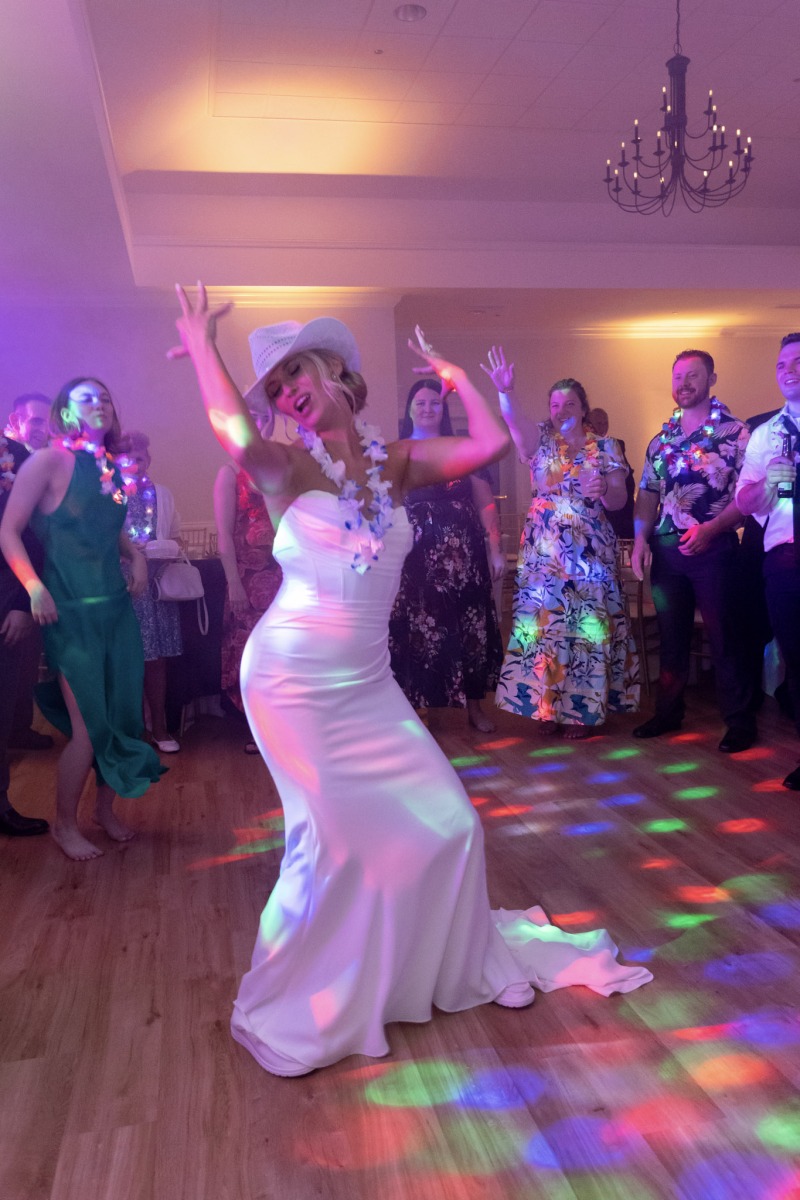 It was quite literally the perfect day for Amanda & Logan to tie the knot at Aurora Meadows. The weather was perfect, and the reception space looked beautiful with our soft gold uplighting accenting the blue and white decor. The food and staff were wonderful but after dinner the bridal party was ready to party! From that point on, the dance floor hoppin’! We couldn’t have asked for a better night! Congrats Amanda & Logan!