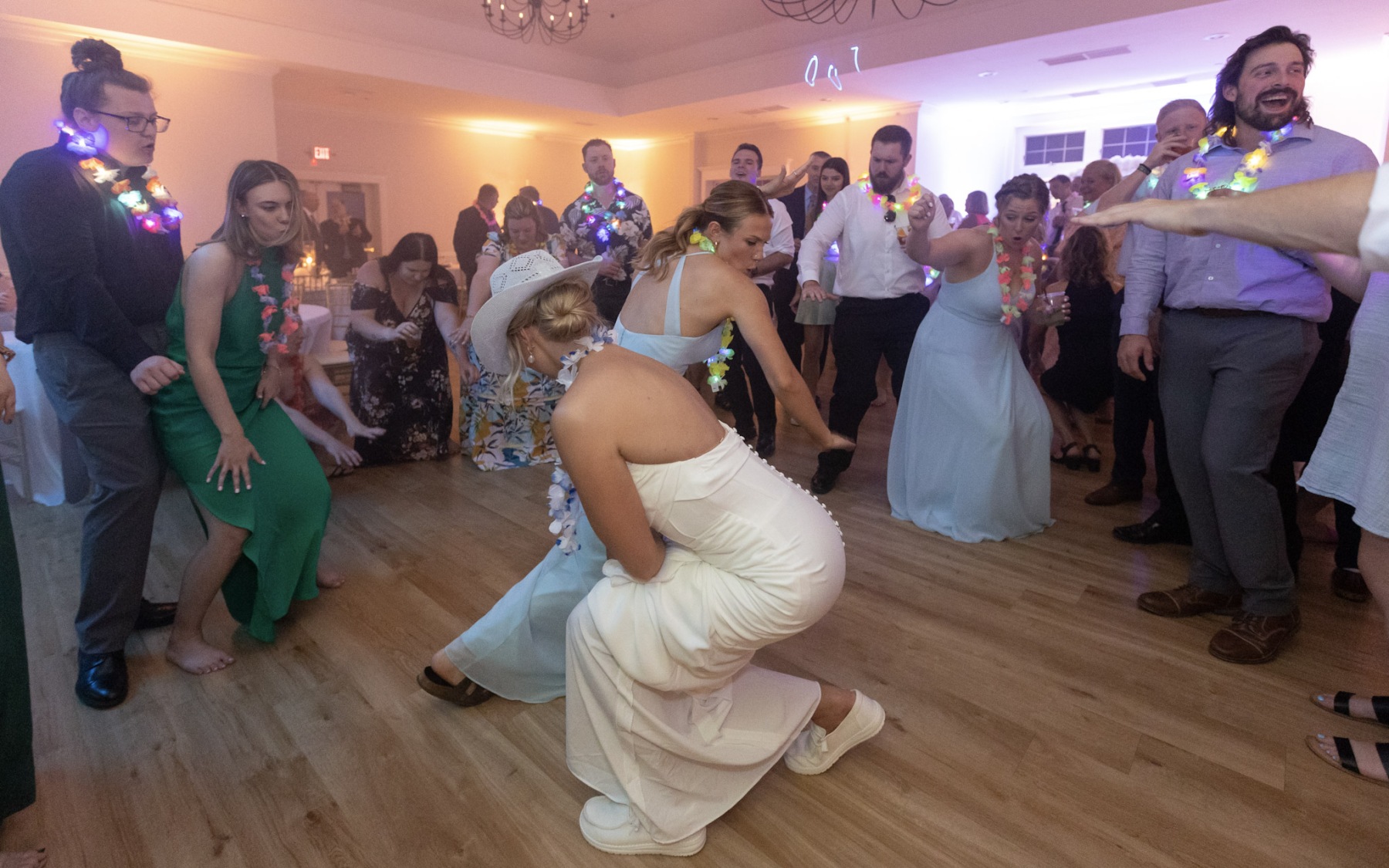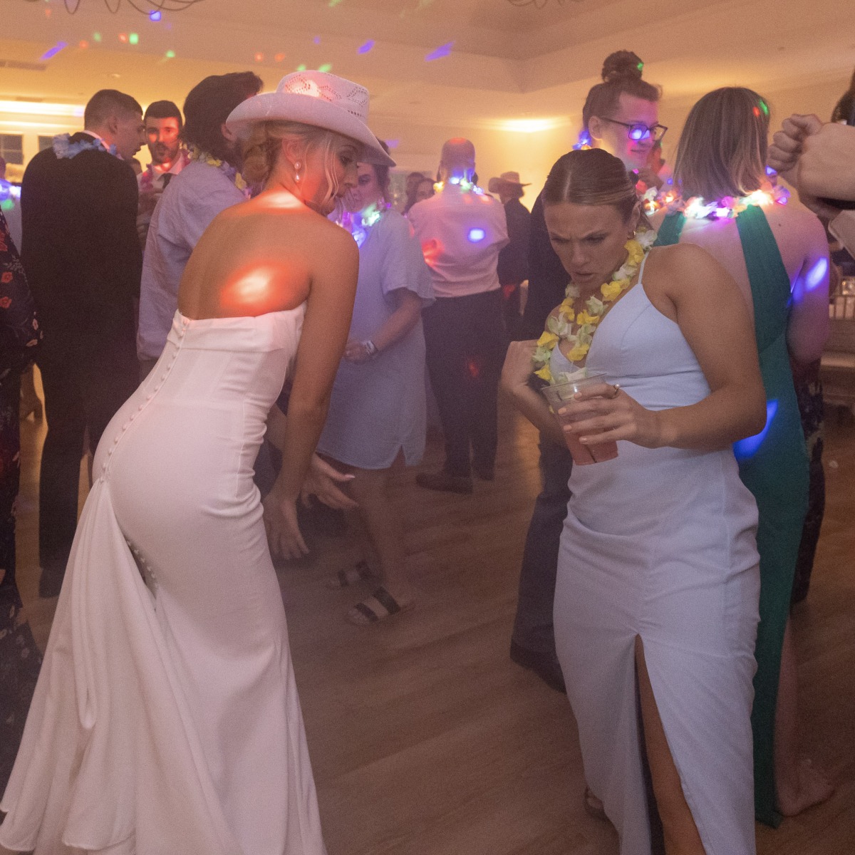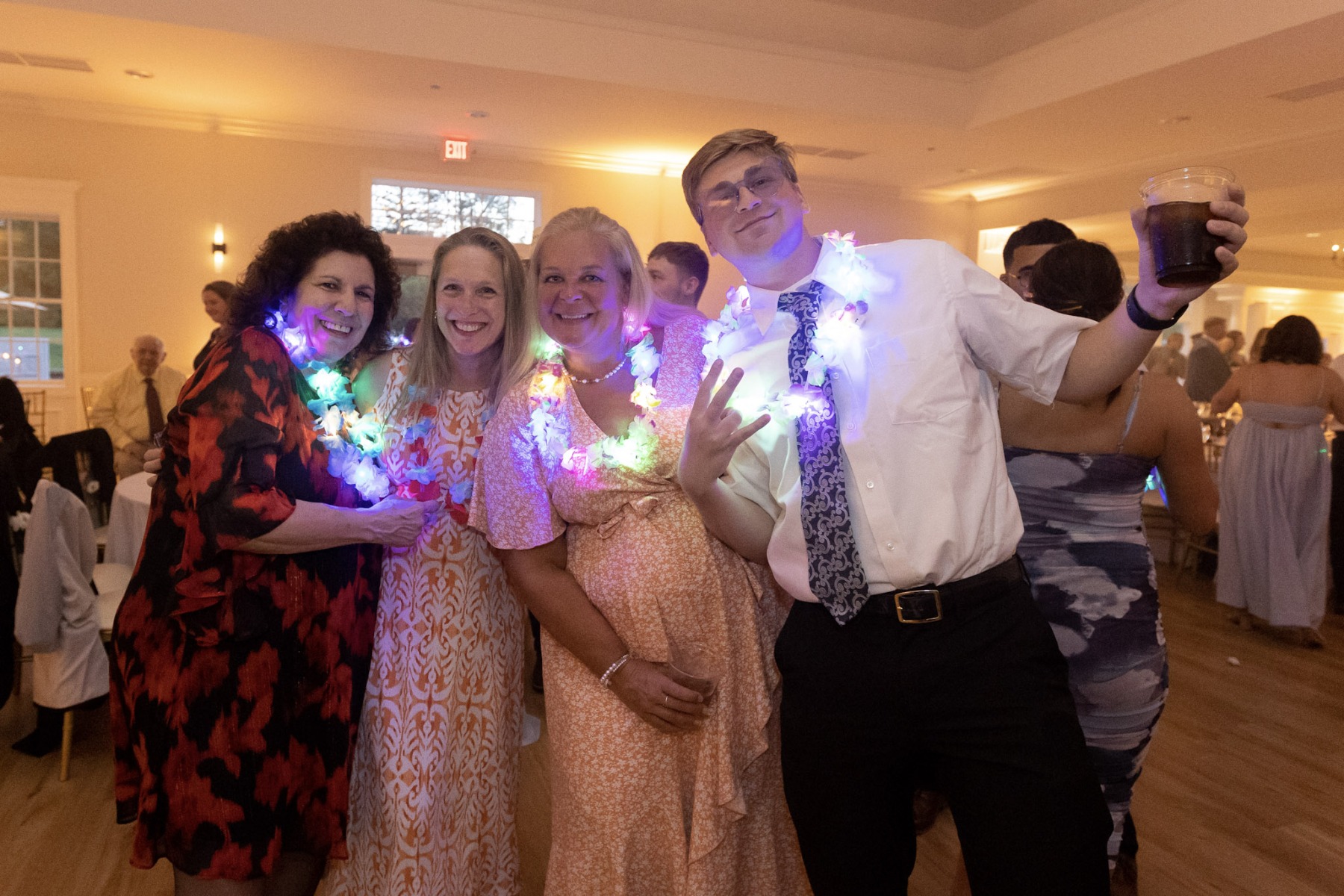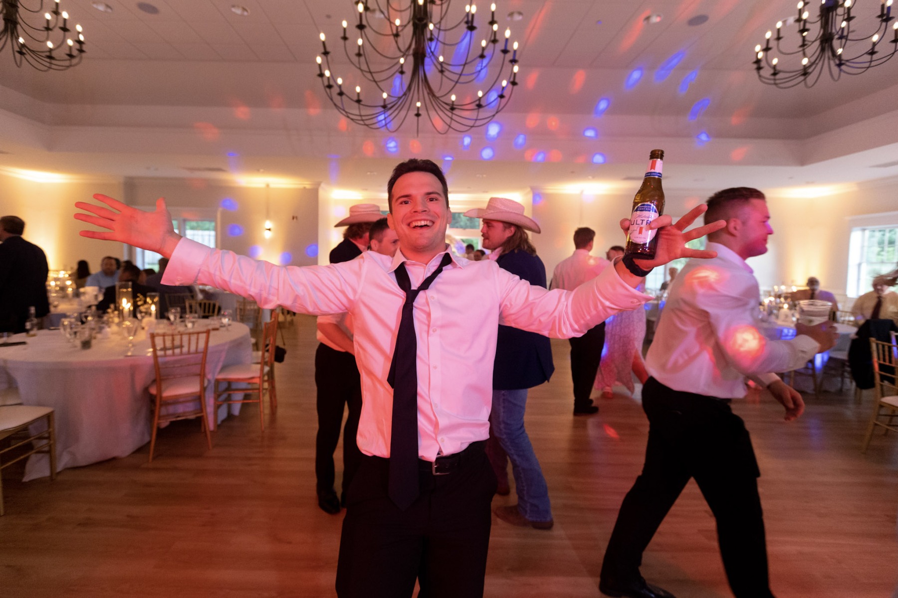 It was quite literally the perfect day for Amanda & Logan to tie the knot at Aurora Meadows. The weather was perfect, and the reception space looked beautiful with our soft gold uplighting accenting the blue and white decor. The food and staff were wonderful but after dinner the bridal party was ready to party! From that point on, the dance floor hoppin’! We couldn’t have asked for a better night! Congrats Amanda & Logan!