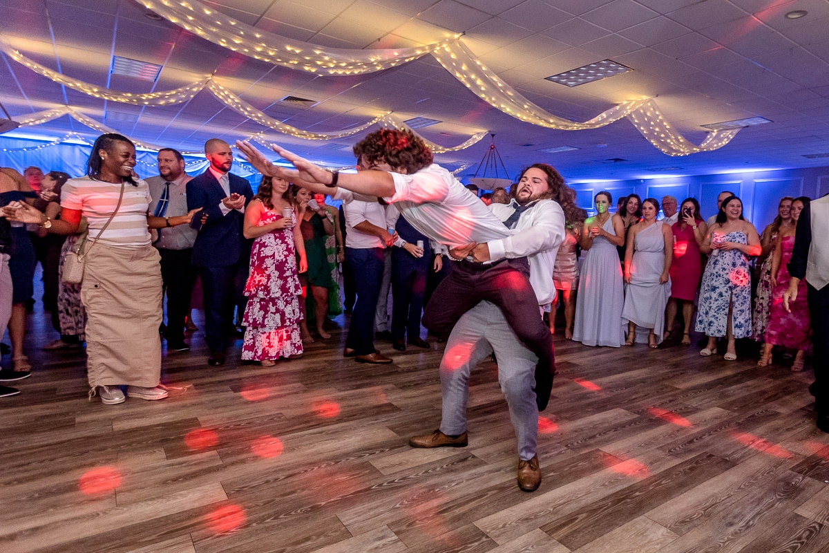 We had such a great time celebrating Jessica & Sam’s big day at St. Demetrios! They were such a laid back couple and so easy to work with. The ballroom looked fantastic washed with blue uplighting and the food was great as always! In between trips to the photo booth, guests had the dance floor on fire all night long! Congrats Jessica & Sam!